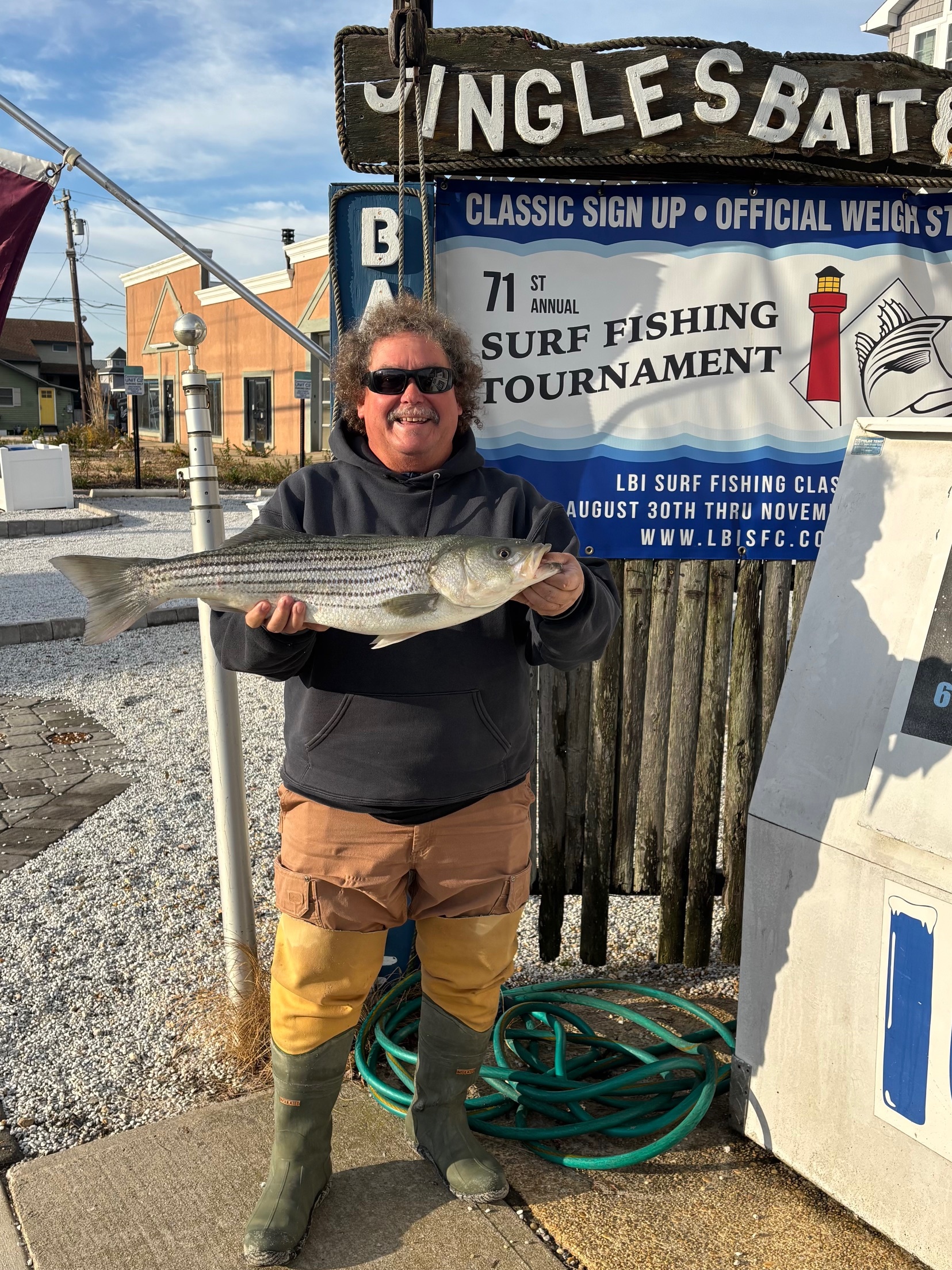 2025 Jingles In-Store FALL Tournament - $10 to enter. Heaviest fish wins - Winners based on weight - tie break is length. All Bass have to be a minimum of 28” and maximum of 31”. Bluefish are a minimum of 16" and Kingfish minimum of 12". All fish must be caught off surf only (no boat). Oct. 5 through Nov 30th - Total Pool: $160 Striped Bass: Pat Gallen.............................10/6.....................................10.54#.............................30 7/8"Pat Gallen............................11/20....................................9.50#...............................29 1/4"John Sullivan.........................11/23......................................9.2#...............................29"Sonny Markoski......................11/5.....................................9.14#...............................30 5/8"Sonny Markoski......................11/2.....................................8.10#...............................28… ...