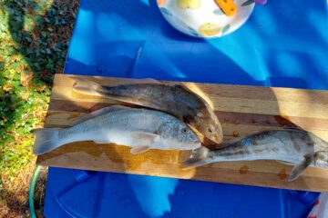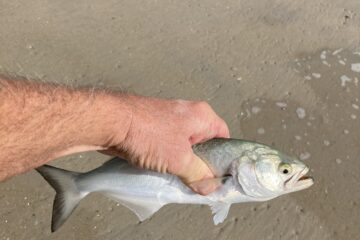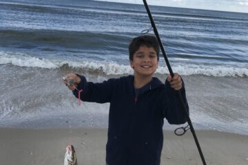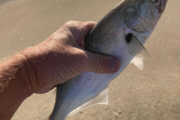 Caught and released 6 blues up to 13″ on the incoming tide in Beach Haven Sunday morning using mullet.