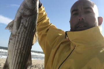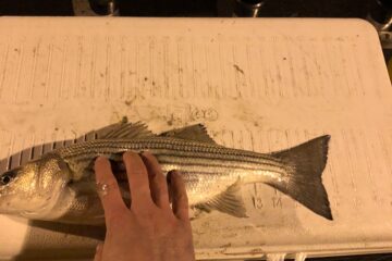 I caught and released this 27” Striper from the Pearl Street surf. Caught on salted clam on the incoming tide.