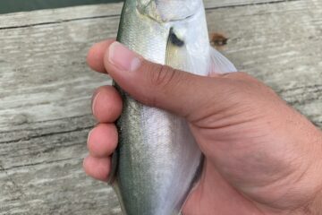 Lots of schools of cocktail blues in the bay in Beach Haven.