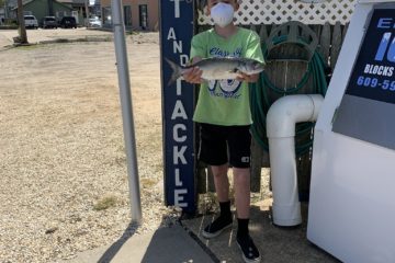 John Dorsch caught this blue on the surf in Holgate. 18″ and 1.96 pounds.