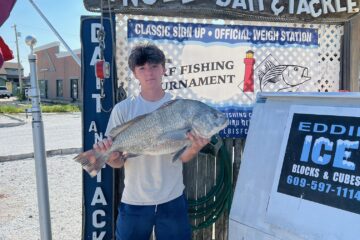 Jake Dorsch with a 29.5″ and 16.36# black drum from the inlet! September 7, 2024 Jingles Gallery Read more