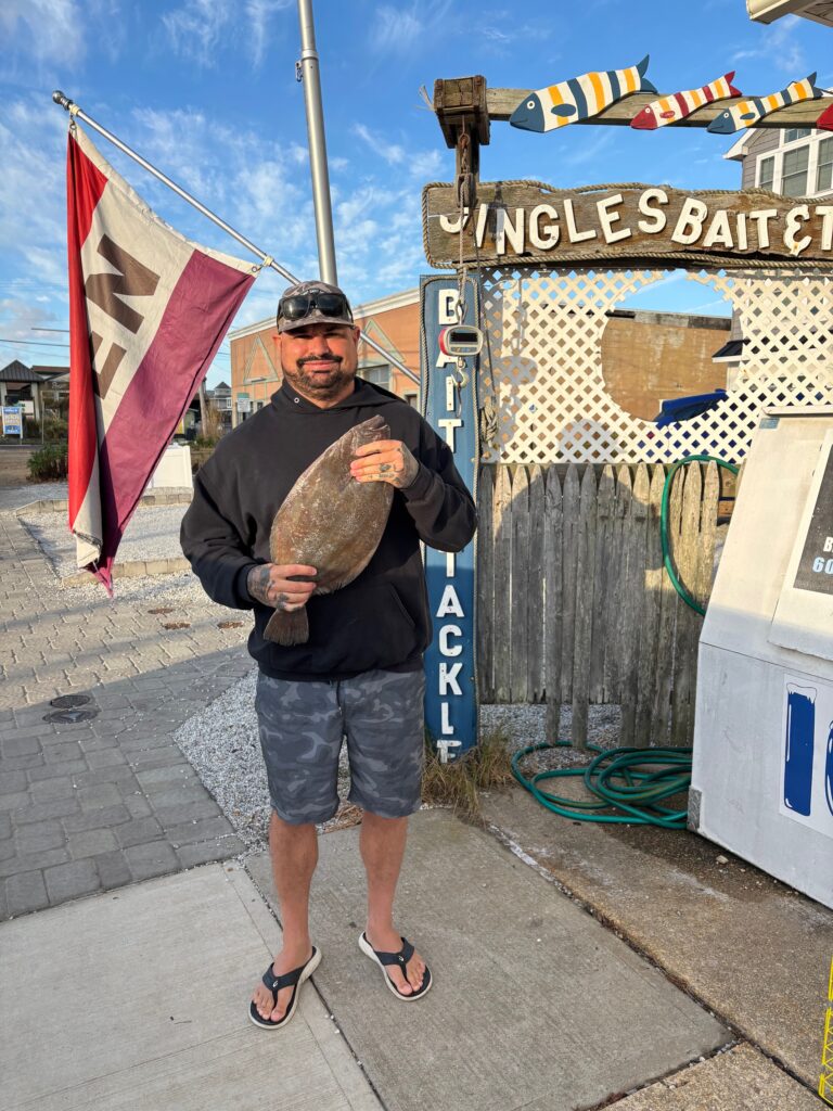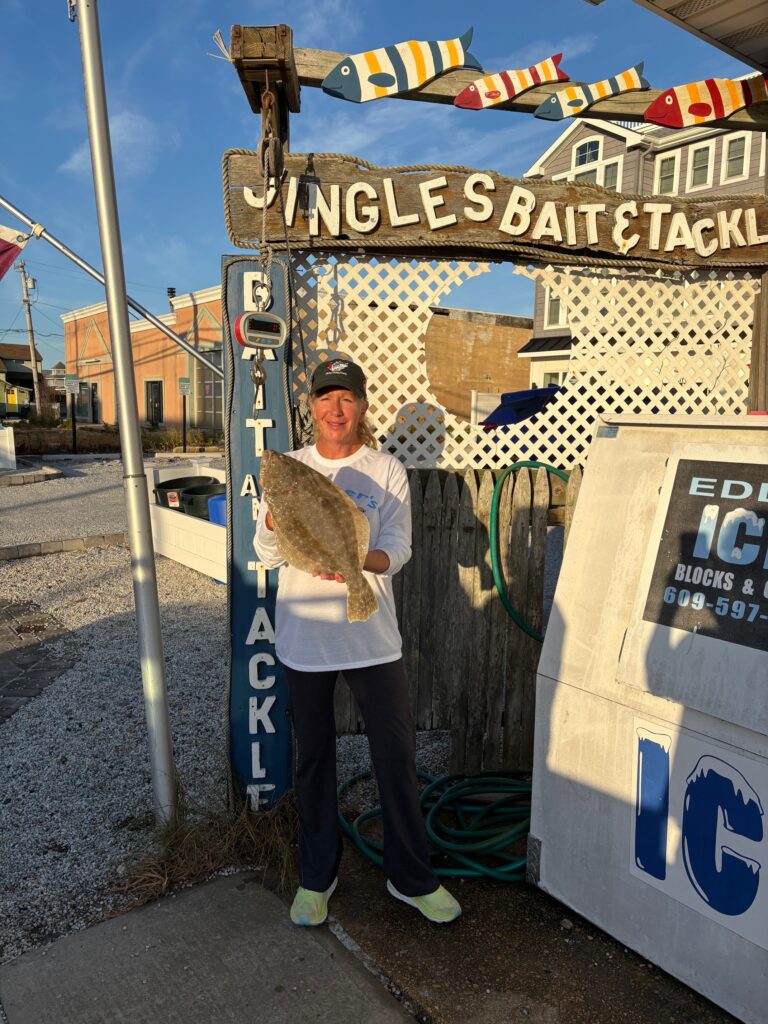 We have had a couple LBI Classic Fluke weigh-ins over yesterday and today. Yesterday Chris Masina brought in this beauty fluke – 4.34# and 21.75″ using Gulp up in Barnegat Light. And today, Liza Conti has a 2.38# and 18.75″ fluke caught using a minnow in Holgate. On the surf there have also been reports of bluefish on mullet and kingfish on bloodworms and fishbites.