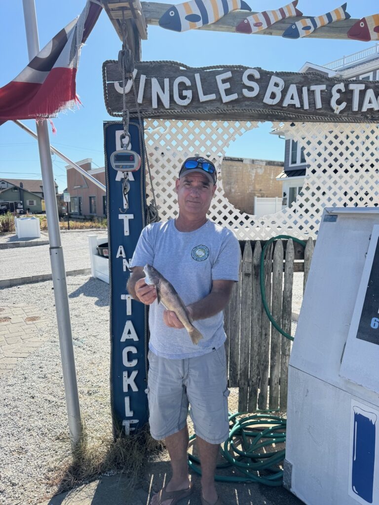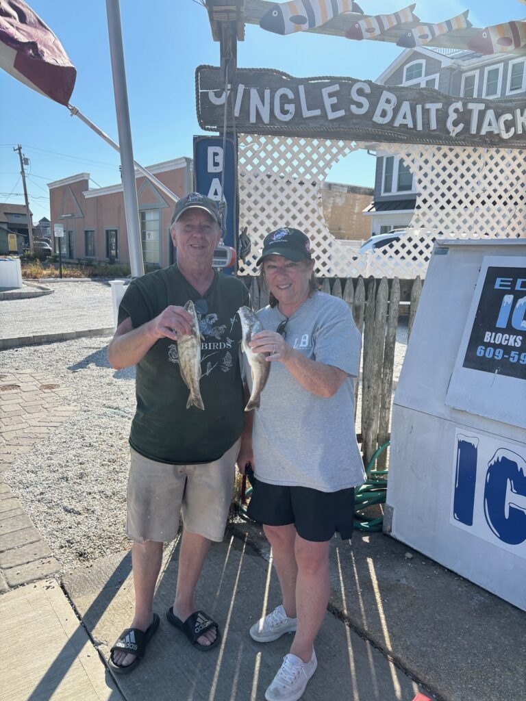 We have had a few kingfish weigh-ins here over the last couple of days for the 71st LBI Surf Classic! Joe Handley signed up for the Classic on Wednesday morning and was back with a kingfish weigh-in a little later that day – .78# and 12.75″. And yesterday we had Whitey and Eileen Roth both come in with his and hers kingfish. Whitey’s was .78# and 13 1/8″ and Eileen’s was .9# and 13.5″. Eileen used mullet and Whitey was bloodworm. Pat Gallen was on the surf yesterday too and racked up a kingfish, a spot, a short fluke and a small blue. So get out there on these beautiful days and fish!