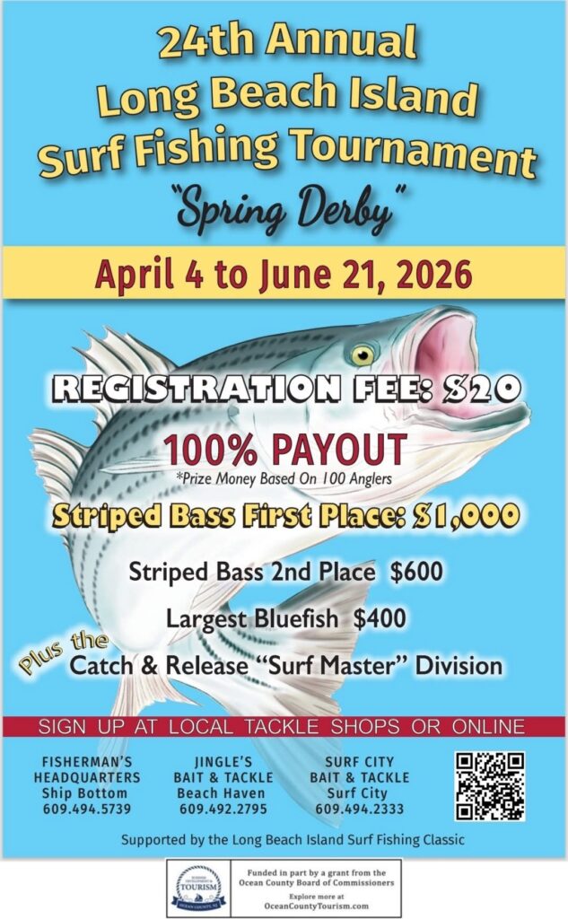 Haven’t heard of any action on the beach as of yet but the birds are working the ocean down here, up and down the island. Anglers are catching some nice size striped bass in the bay using bloodworms and bloodballs. And don’t forget to register for the 2026 Sping Derby! And the Jingles In-store tournament. Check our featured page on our website for more info.