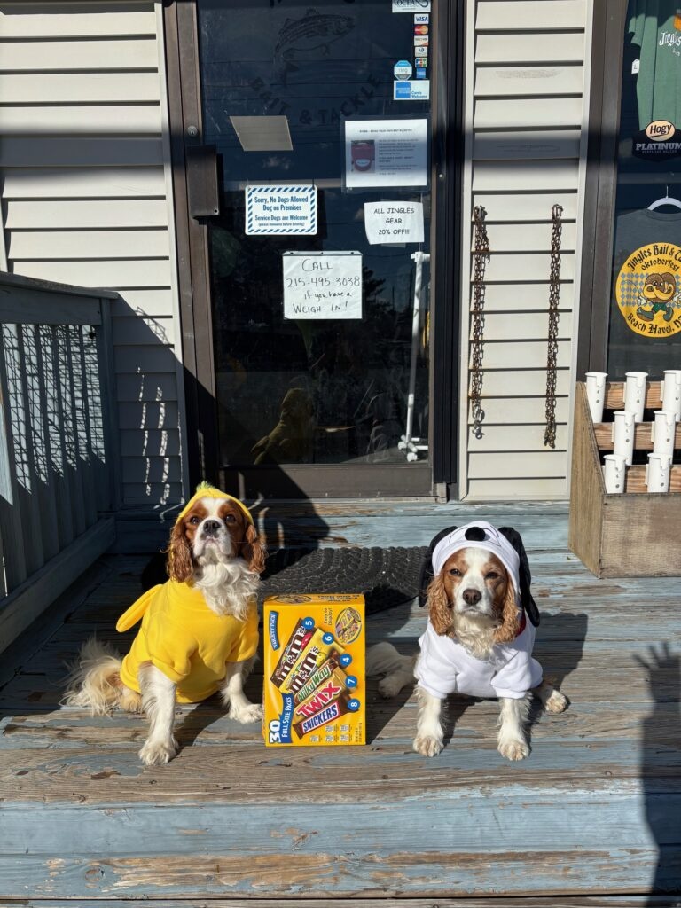 It’s a partly sunny, cooler Halloween morning here in Beach Haven today. But did you hear what I said? SUN! The wind this morning is strong coming from the W at about 23mph. Currently the surf is a bit choppy but not too bad with 2-3 foot waves. You will need about 4-6oz to hold. Beach Haven water temp is 59.4°. The air temp is currently 55° and heading to 57°. And for any Trick or Treaters, Snoopy and Woodstock have some candy here to hand out!