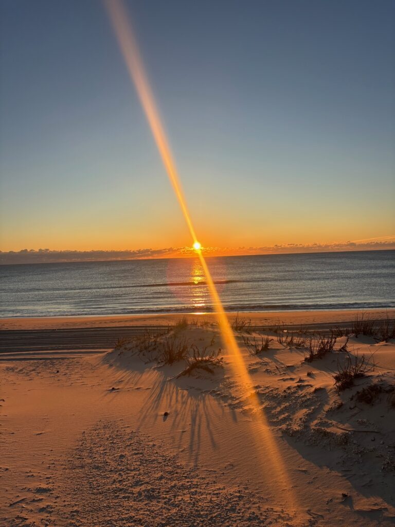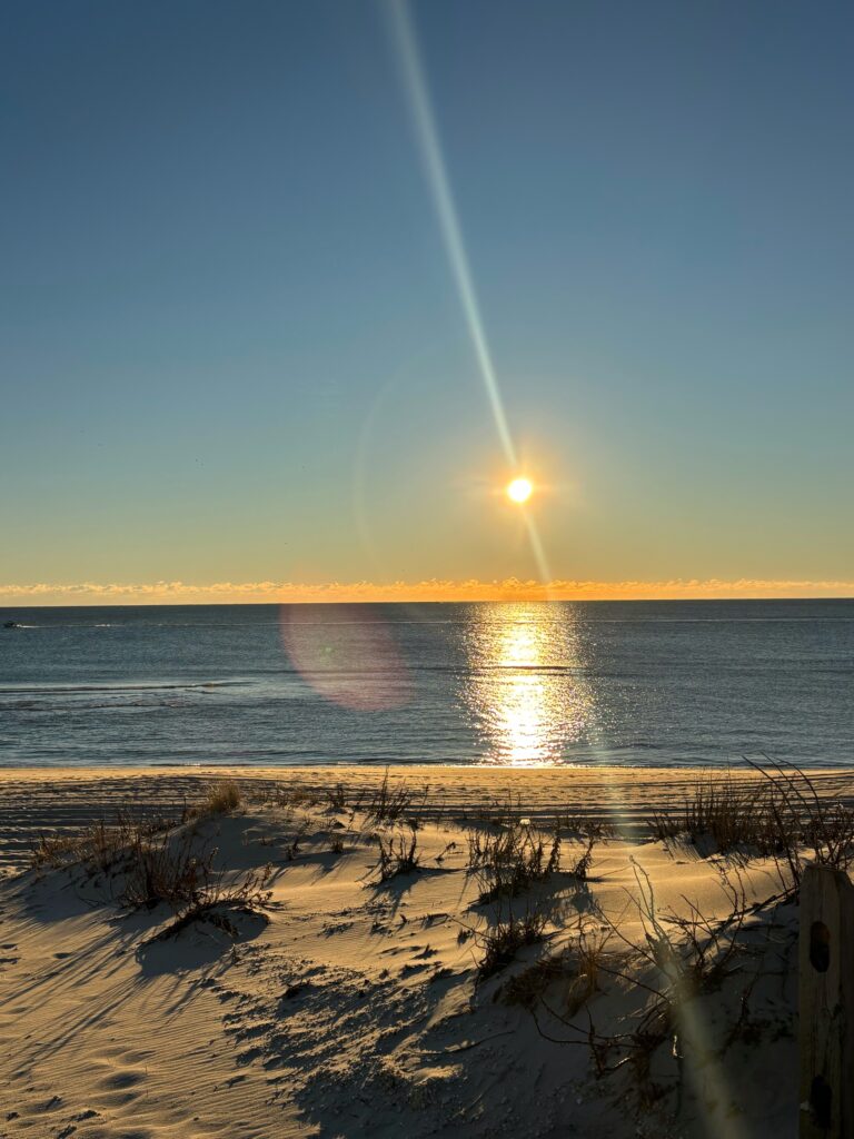 It’s a bright, sunny, cold morning here in Beach Haven today! The wind this morning is mild coming from the WNW at about 4mph. Currently the surf is flat calm with 0-1 foot waves. You will need about 3-4oz to hold. Beach Haven water temp is 45.5°. The air temp is currently 33° and heading to 40°.